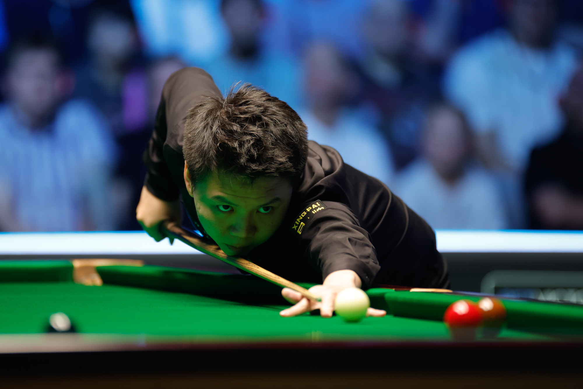 周跃龙在比赛中。图源:世界斯诺克巡回赛微博
